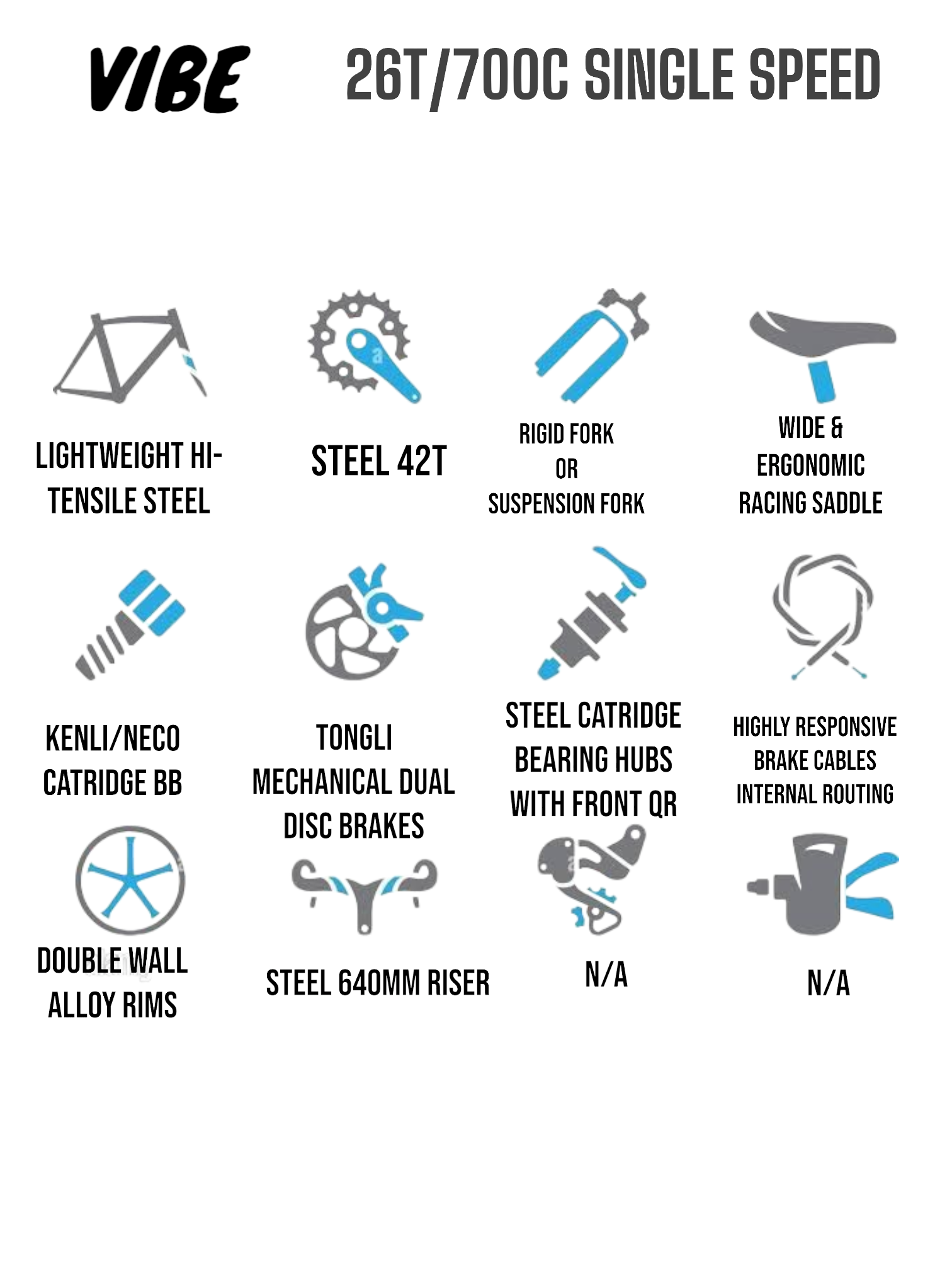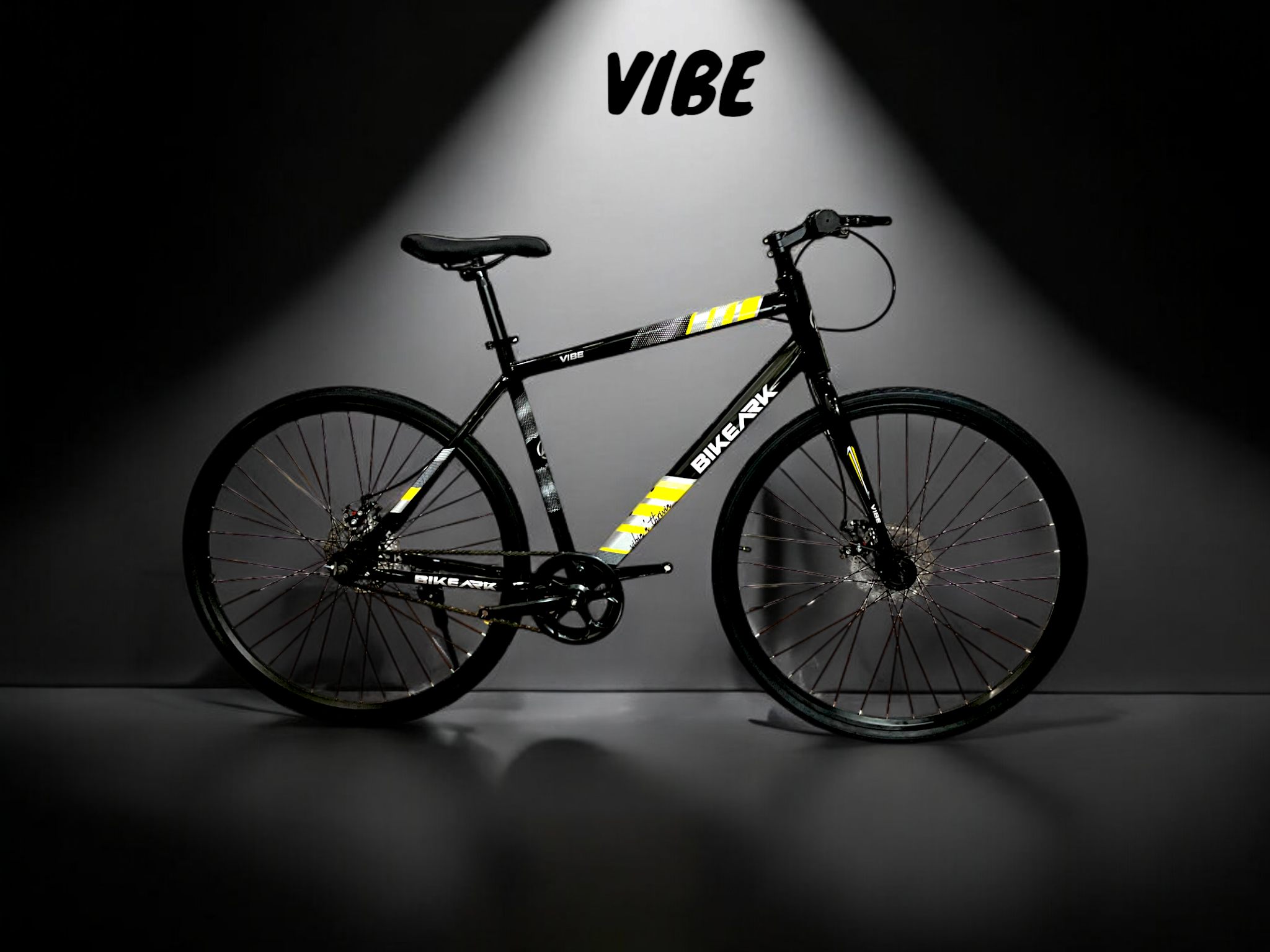 VIBE 700C is a single-speed city commuter. The bike is a hot favorite among school students and office-goers. Equipped with Dual disc brakes, threadless headsets, stunning water decals and anti-skid 700X35C Nylon tyres, the bike is a steal at just INR 12,990. If you need a bike with a hassle-free ownership experience, the Vibe is your GOTO bike. The bike is also available with Bullhorn, Drop Handlebars and Front Magnesium alloy wheel. Contact us on Instagram @bikeark for customization options.